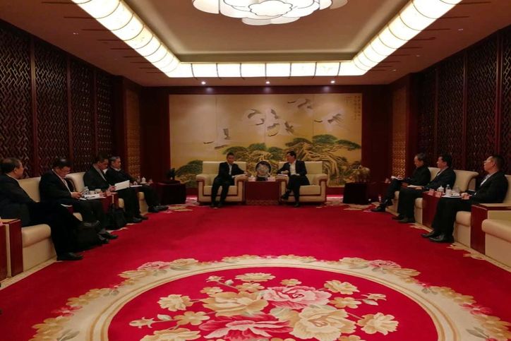 集團(tuán)公司董事長(zhǎng)、黨委書(shū)記斯?jié)煞蚺c國(guó)家電投董事長(zhǎng)、黨組書(shū)記王炳華等進(jìn)行交流